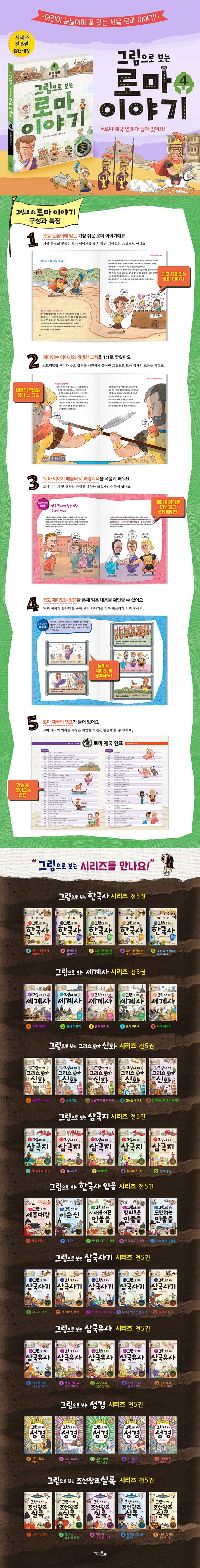 〈그림으로 보는 로마 이야기〉는 생동감 넘치는 입말체로 하루아침에 이루어지지 않은 로마의 주요 사건과 인물 이야기를 재미있게 풀어냈어요. 작은 도시 국가 로마가 지중해의 대제국으로 성장해 눈부신 문화를 꽃피우고 동서로 분열되어 역사 속으로 사라지기까지 로마의 역사를 어린이의 눈높이에 맞춰 생생한 그림으로 담아내 세계사를 바라보는 눈이 한층 더 넓어질 거예요.