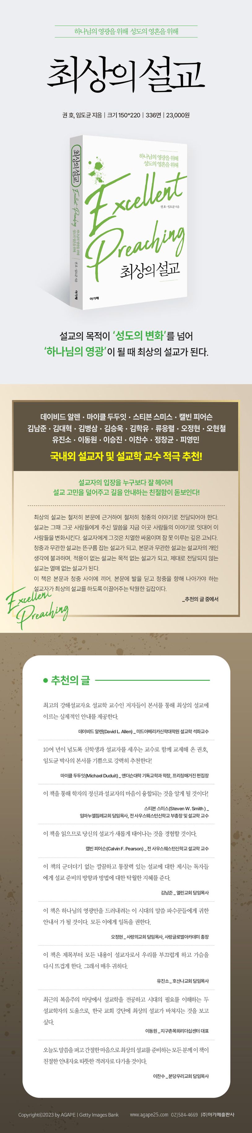 최상의 설교는 철저히 본문에 근거하여 철저히 청중의 이야기로 전달되어야 한다. 설교는 그때 그곳 사람들에게 주신 말씀을 지금 이곳 사람들의 이야기로 잇대어 이 사람들을 변화시킨다. 설교자에게 그것은 치열한 싸움이며 잠 못 이루는 깊은 고뇌다. 청중과 무관한 설교는 뜬구름 잡는 설교가 되고, 본문과 무관한 설교는 설교자의 개인 생각에 불과하며, 적용이 없는 설교는 목적 없는 설교가 되고, 제대로 전달되지 않는 설교는 열매 없는 설교가 된다.