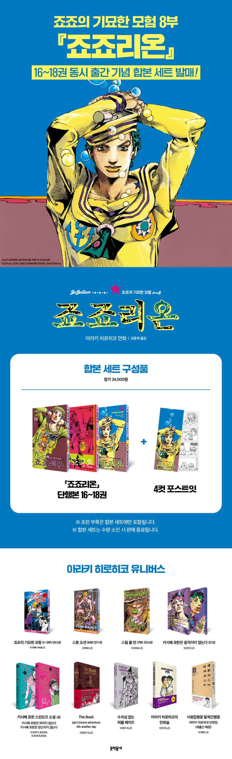 죠죠리온 특전포함 초판한정 세트(16~18) (죠죠의 기묘한 모험 Part 8 | 전 3권)