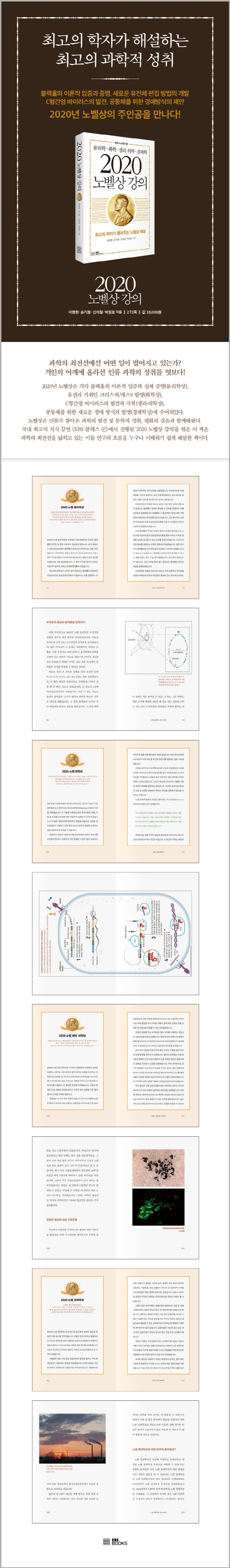 이 책은 2020년 노벨상(물리학, 화학, 생리ㆍ의학, 경제학) 수상자와 그들의 연구 업적을 국내 최고의 학자들이 해설하고 강의한 책이다. 과학책방 갈다의 대표인 이명현이 노벨 물리학상을, 연세대학교 생화학과 교수인 송기원이 노벨 화학상을, 카이스트 의과학대학원 교수인 신의철이 노벨 생리ㆍ의학상을, 명지대학교 특임교수인 박정호가 노벨 경제학상을 해설했다.