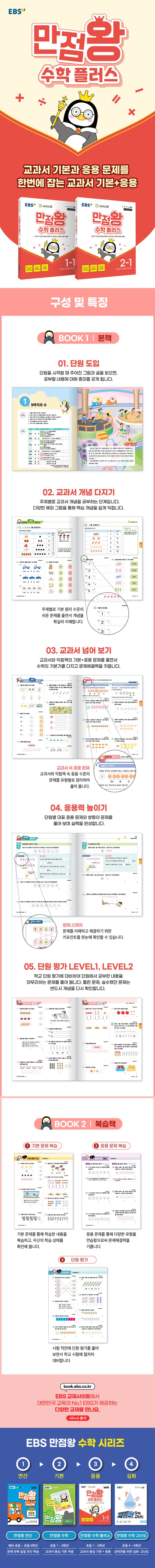 만점왕 수학을 쉽게 푸는 친구들을 위한 문제 중심 수학 학습서다. 주제별로 제시된 다양한 예와 그림을 통해 교과서 개념을 쉽게 익히고, 기본 원리 문제를 해결해 탄탄한 기본기를 완성할 수 있다. 교과서와 익힘책 속 기본 문제와 응용 문제를 풀면서 기본 실력을 다지고, '응용력 높이기' 코너의 대표 응용 문제를 풀면서 중상 수준의 문제를 익히며 문제 해결력을 키울 수 있다.