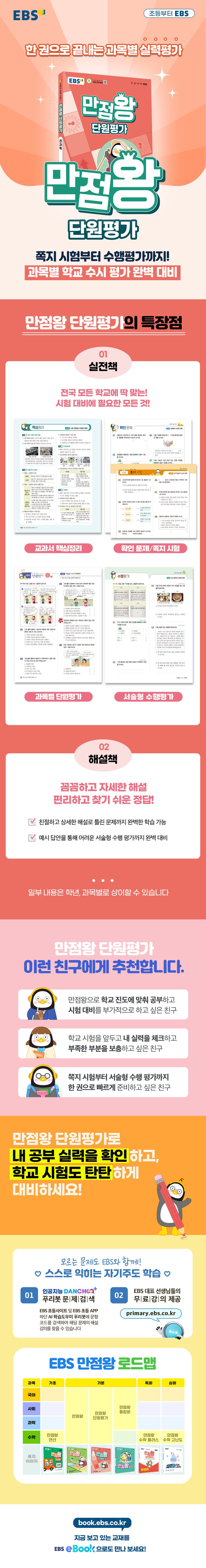 출제율 높은 문제로 딱 맞춰 대비하는 『만점왕 단원평가』로, 내 공부 실력을 확인하고, 학교 시험도 탄탄하게 대비하세요!