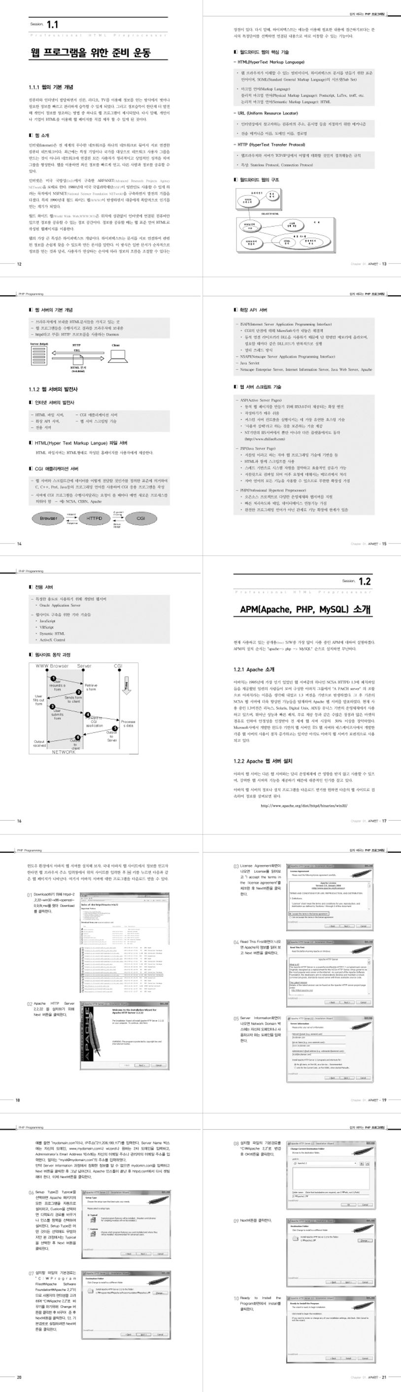 [쉽게 배우는 PHP 프로그래밍]은 PHP 언어를 처음 대하는 독자에게 문법을 쉽게 이해할 수 있도록 예제 프로그램을 통하여 설명하였으며, 주로 SQL문법이나 HTML 문서 작성 또한 알기 쉽게 습득할 수 있도록 구성한 책이다. 아울러 APM(Apache, PHP, MySQL)통합 버전의 사용에 관해서도 이해할 수 있도록 프로그램 설치부터 사용 방법 및 그 개념을 설명하였다.