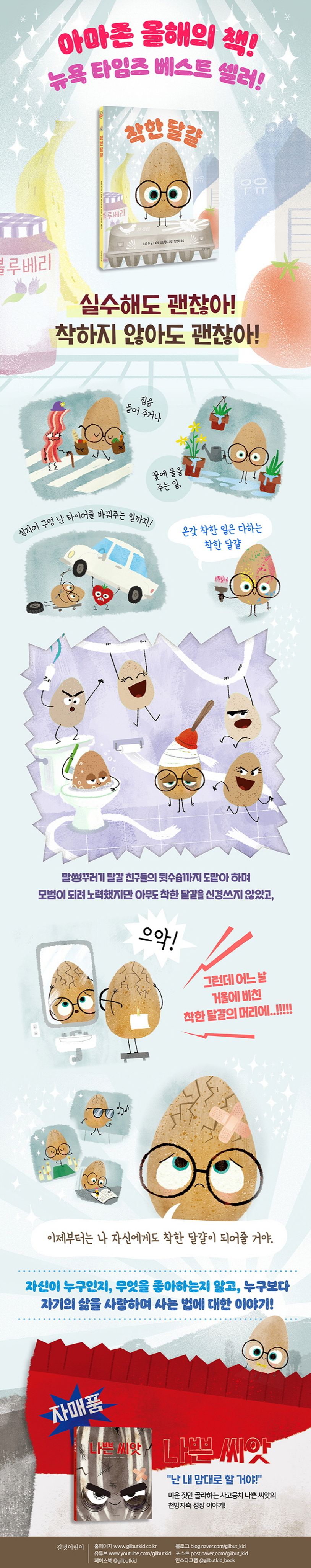 착한 아이가 되어야 한다는 무언의 가르침 속에서 자라는 우리 아이들에게 《착한 달걀》은 진짜 자신이 원하는 삶을 찾을 수 있도록 응원합니다. 착한 달걀처럼 남이 아닌 자기 자신에게 착한 달걀이 되라고 말이에요.