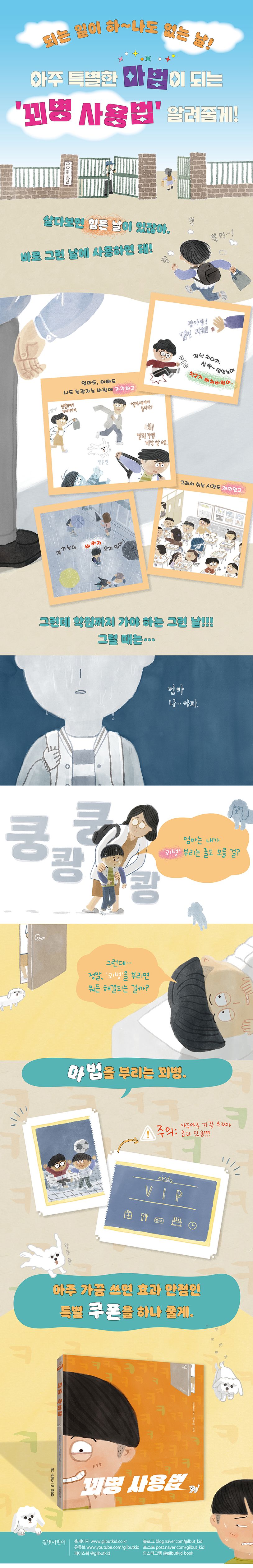 《꾀병 사용법》은 속상한 일만 가득한 날, 걱정을 날려 버릴 마법의 특효약 ‘꾀병’을 사용하는 방법을 담은 그림책입니다. 누구나 여러 가지 이유로 한 번쯤 어른들에게 부려봤을 꾀병에 대한 이야기로, 아이가 부리는 꾀병을 알면서도 속아 넘어가 주는 엄마의 따뜻한 사랑과 믿음이 더해져 더욱 따뜻하고 유쾌한 이야기로 완성되었습니다. ‘백 번 산 고양이 백꼬선생’ 시리즈로 독자들의 사랑을 받은 동화 작가 정연철의 글에 이명하 작가의 재기 발랄하고 귀여운 그림들이 더해져, 아이부터 어른까지 모두가 즐겁게 볼 수 있는 특별한 《꾀병 사용법》을 지금 만나 보세요!