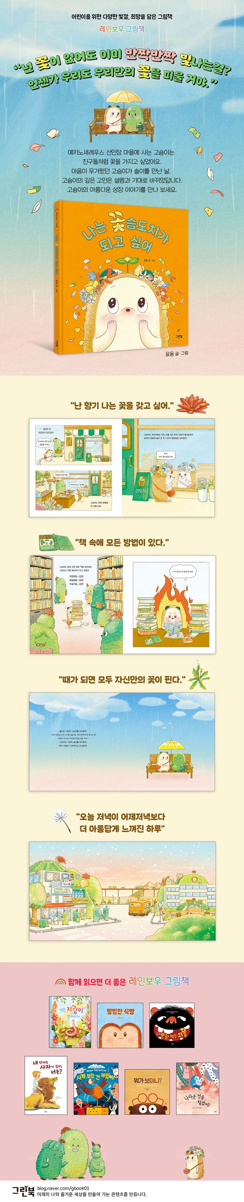이야기의 주인공인 ‘고슴이’는 선인장 마을에 살며 친구들의 머리에 피어난 아름다운 꽃을 부러워합니다. 자신에게만 꽃이 없는 것 같은 결핍감, 그것은 아이들뿐만 아니라 어른에게도 익숙한 감정입니다. 자신의 결핍을 채우기 위해 전전긍긍하던 고슴이가 자신의 노력으로 문제를 해결하고자 하는 의지, 그 갈망은 누구나 한 번쯤 성장의 길목에서 가져보았을 법한 마음입니다. 이것은 단지 꽃을 얻기 위한 노력이 아니라, 내 주변 사람들과 동등해지고 싶고, 자신의 존재를 인정받고 싶고, 사랑받고 싶다는 갈망이기도 합니다.