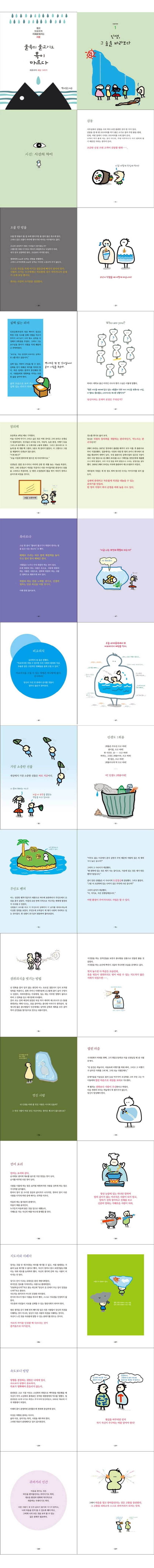 한 컷의 카툰에 담긴 놀라운 힘『물속의 물고기도 목이 마르다』. 이 사회를 이끌어가는 리더를 비롯한 평범한 모든 사람들이 행복해지기 위해 리더의 역할은 무엇인지, 우리가 추구해야 할 ‘삶의 방향’은 무엇인지, 위트 넘치는 카툰과 글로 제시해준다. 저자는 이 책에서 인생을 숲에 비유하면서, 그 숲을 바라보는 관점을 바꾸면 인생 경영에 필요한 기회와 실천 방법을 발견할 수 있다고 말한다.