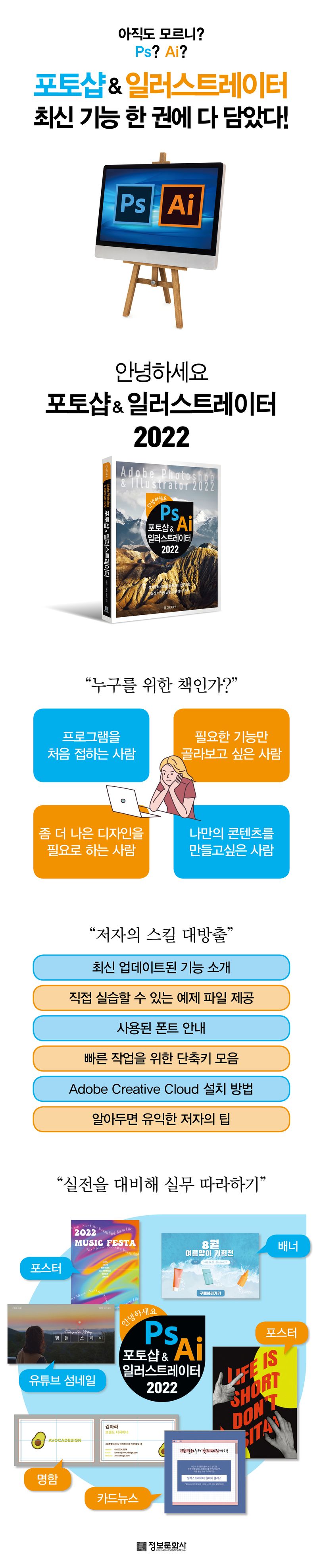 보편적으로 사용되는 그래픽 프로그램인 포토샵과 일러스트레이터를 사용하고 싶다면 매뉴얼이든 기능 모음집을 필요로 한다. 이 책은 최신 2022 버전에 맞춰 설치부터 응용하여 실생활에 활용하는 방법까지 설명하고 있다. 처음 시작하는 사람들도 어렵지 않도록 픽셀과 해상도부터 설명하여 최신 추가된 기능을 안내하고, 예제 파일을 제공함으로써 직접 따라 해보며 실력을 향상할 수 있다. 특히 무료로 폰트를 다운받고 설치할 수 있도록 안내하고, 빠른 작업 효율을 위한 단축키도 맥과 윈도우로 나누어 한눈에 알아볼 수 있게 하였다. 그렇기 때문에 프로그램 실력을 향상시키고 싶은 사람이나, 신기능을 효율적으로 활용하고 싶은 디자이너 모두에게 적합하다. 무엇보다 기본적인 설명 외 중간중간 저자의 팁을 넣어 추가로 필요한 기능까지 섭렵할 수 있는 최적의 도서이다.