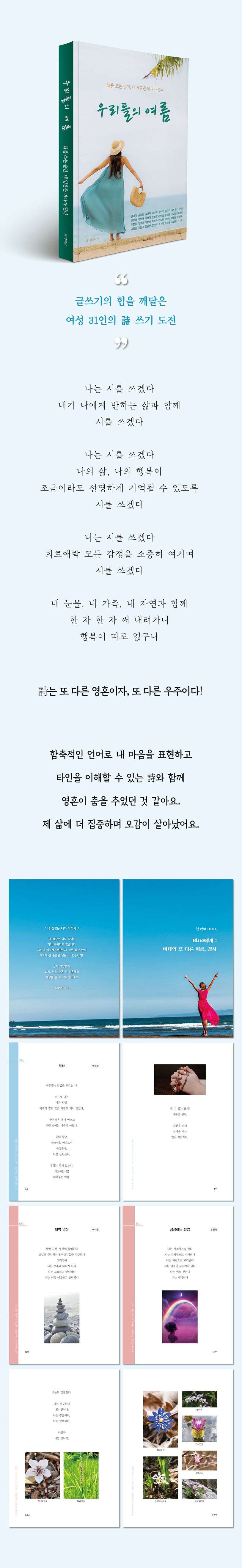 글쓰기는 생존을 위해 필수이고, 함께의 힘은 크고 강하다는 것을 경험했다. 공저, 오랜 시간 기도하며 꿈꾸었던 일. 책 읽고 글 쓰는 시간이 나를 변화시킬 수 있는 강력한 도구 중 하나임을 깨달은 여성 31인이 이제 詩 쓰기에 도전한다.