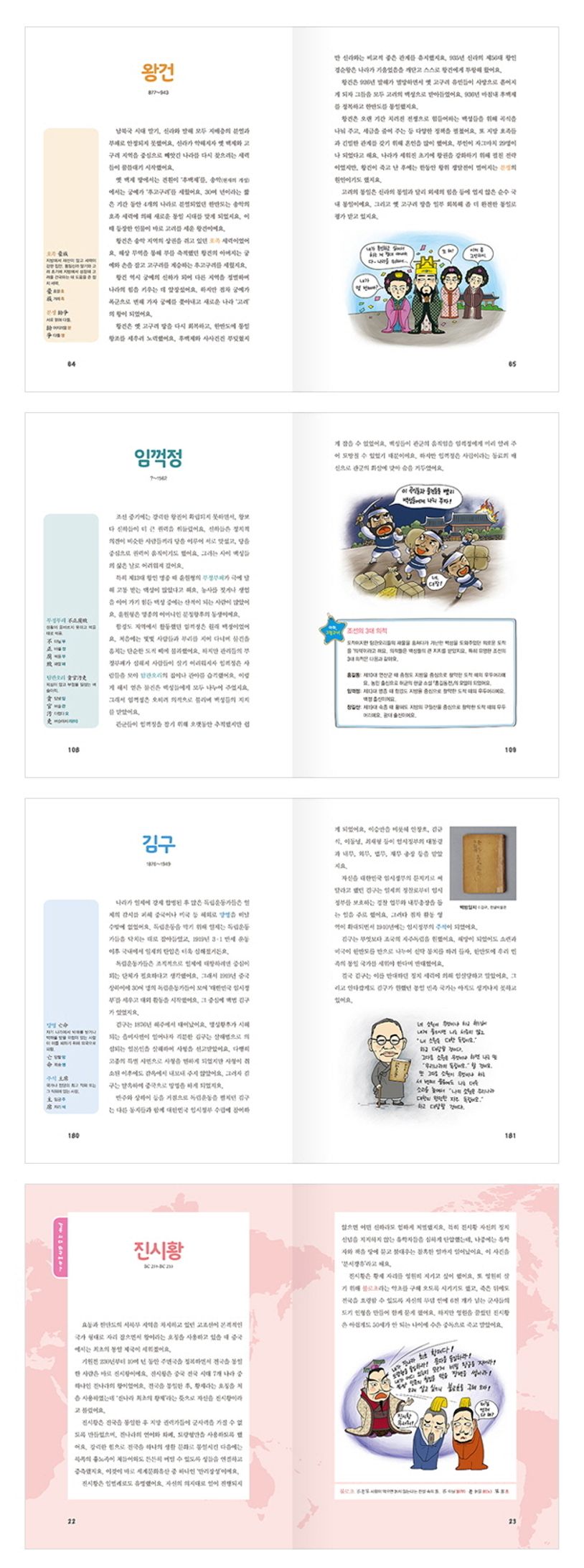 한국과 세계의 역사 흐름을 알 수 있는 한국과 외국의 시대별 대표 위인 100명의 이야기가 담긴 『교과서에 나오는 100명의 위인들』은, 첫째, 고조선부터 대한민국까지 시대별로 대표적인 한국의 위인들을 수록했어요. 둘째,‘같은 시대 외국에는?’을 통해 같은 시대에 산 외국 위인들도 알 수 있어요. 셋째,‘아하, 그렇구나!' 에 위인들과 관련된 재미있는 이야기를 담았어요. 넷째,‘한자어 풀이’로 어렵게 느껴지는 용어도 쉽게 이해할 수 있어요. 과거와 현재, 미래를 이어 주는 100명의 위인들을 만나다 보면 우리가 사는 세상의 역사를 함께 알 수 있어요.