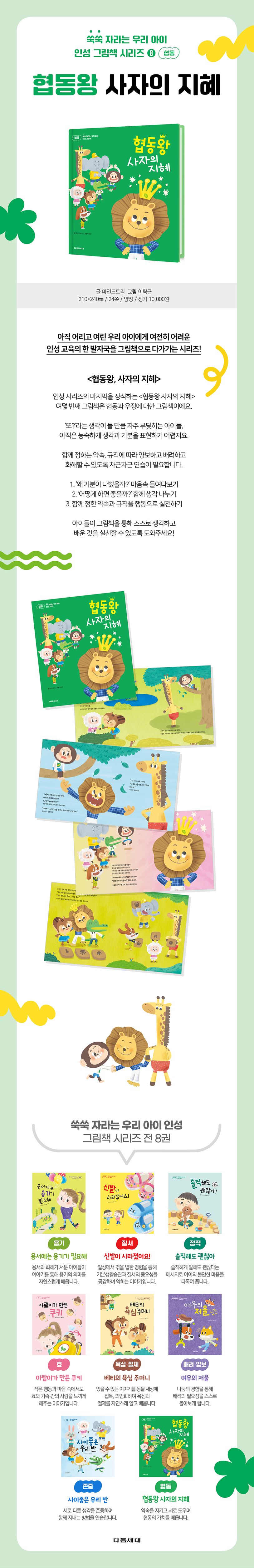 글:마인드트리 마인드트리는우리모두마음의나무를풍요롭게키워건강하고행복한삶을살아가길바라는마음으로연구하는곳입니다.아이들이건강하게성장할수있도록돕고있습니다. 그림:이탁근 10여년간일러스트레이터로활동을하였고한국일러스트레이션학교HILLS에서그림책을공부했습니다.다수의일러스트레이션작업을하였고,현재일러스트레이터와그림책작가로활동하고있습니다.쓰고그린책으로〈오늘도멋진동구〉,〈기울어〉,〈내가코끼리처럼커진다면〉이있습니다.만드는사람도,보는사람도재미있는그림을그려가고있습니다.