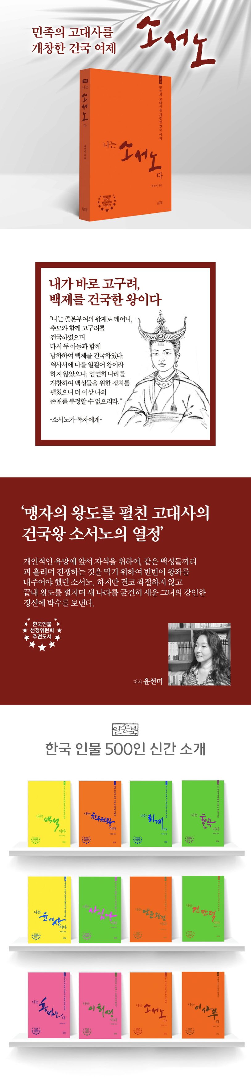고구려를 세운 주몽의 아내, 백제를 건국한 비류와 온조의 어머니로서 ‘킹 메이커’로만 알려져 온 소서노의 실상을 역사적 자료와 소설적 구성으로 생생하게 복원했다.
