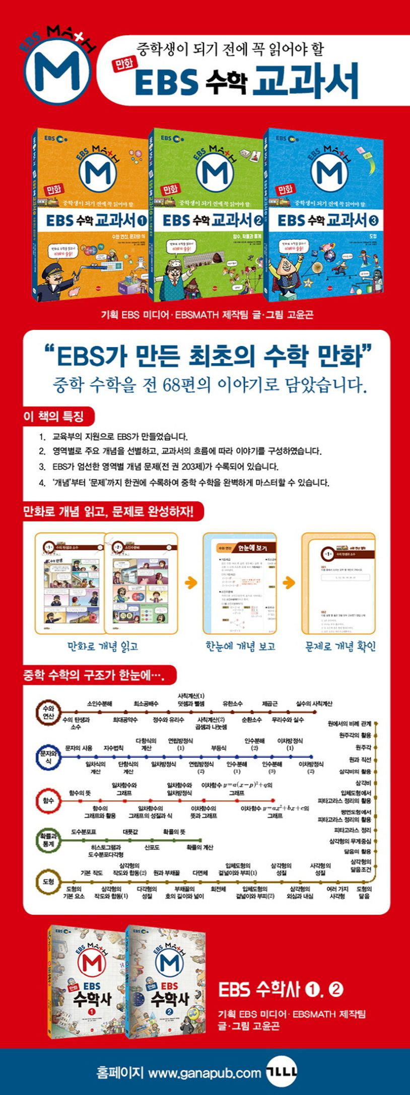 이 책은 수학 개념을 재미있는 이야기와 풍부한 이미지로 담아 초등학생도 술술 읽어 나갈 수 있도록 구성하였습니다. 또한 만화로 표현하되, 중학 교육 과정을 따라 수학의 개념을 빠짐없이 구성하였습니다. 또한 전문가들의 검증을 거쳐 수학을 이미지로 보여줌으로써 쉽게 이해하고 기억하게 만들었습니다. 이에 《만화 EBS 수학 교과서》는 EBS가 만든 신개념 수학 교과서입니다.