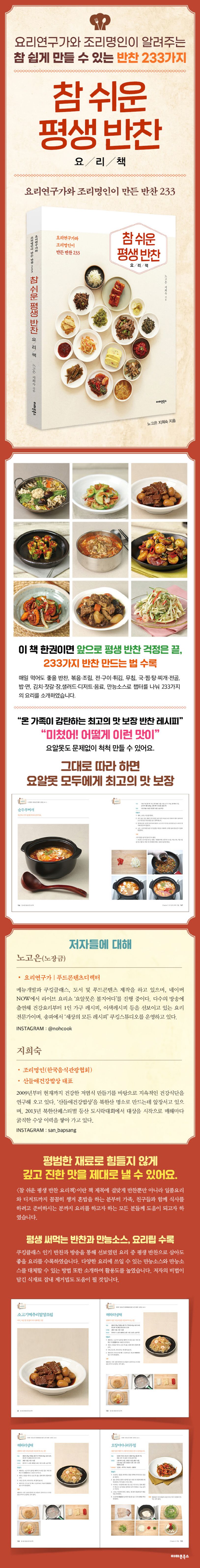 쿠킹클래스 인기 반찬과 방송을 통해 선보였던 요리 중 평생 반찬으로 삼아도 좋을 요리를 수록하였습니다. 다양한 요리에 쓰일 수 있는 만능소스와 만능소스를 대체할 수 있는 방법 또한 소개하여 활용도를 높였습니다. 저자의 비법이 담긴 식재료 잡내 제거법도 도움이 될 것입니다.