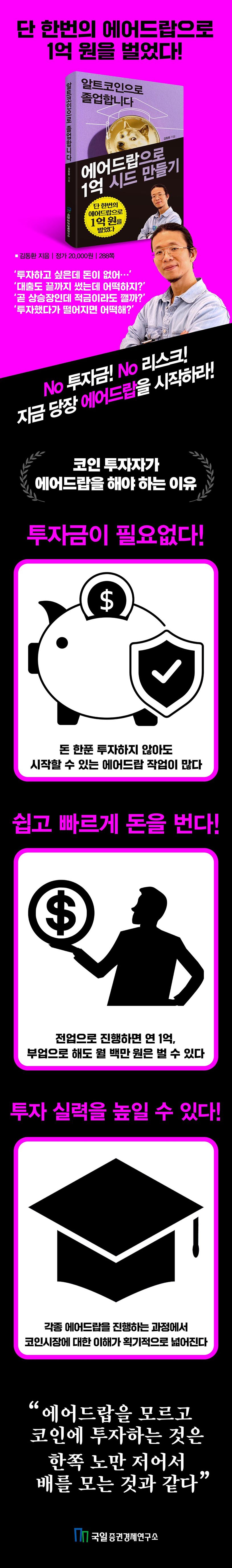 지금 당장 에어드랍을 시작하라. 에어드랍은 ‘투자 졸업’ 즉 경제적 자유 달성으로 가는 가장 확실하고 가장 안전한, 그러면서 가장 빠른 길이 될 것이다.