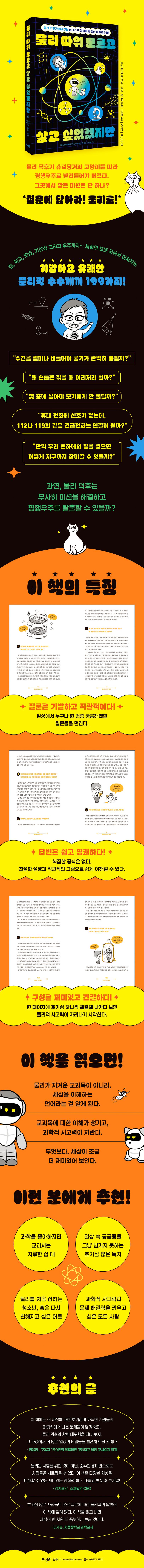 일상의 궁금증을 시원하게 해결해 주는 답변 속엔 교과과정에서 중요하게 다루고 있는 핵심 물리 내용이 담겨 있다. 복잡한 수식 따윈 없다! 과학자들이 직접 답한 친절한 설명과 직관적인 그림 덕에 쉽고 재미있게 이해할 수 있다!