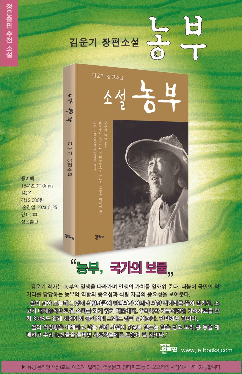 김운기 작가는 농부의 일생을 따라가며 인생의 가치를 일깨워 준다. 더불어 국민의 먹거리를 담당하는 농부의 역할의 중요성과 식량 자급의 중요성을 보여준다.
