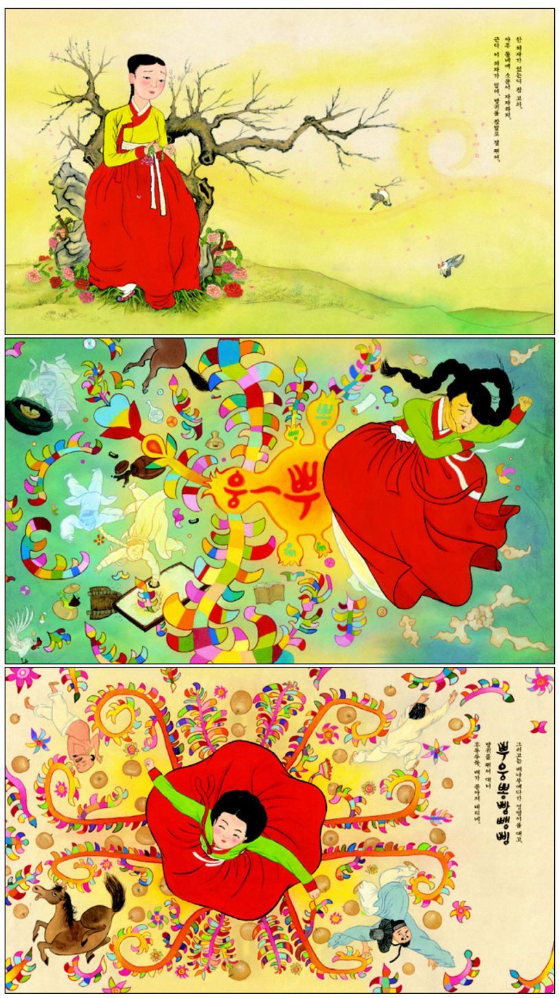 '옛이야기 그림책' 시리즈, 제6권 『방귀쟁이 며느리』. 우리나라 고유의 해학이 묻어나는 옛이야기를 구수한 사투리로 담아낸 그림책입니다. 특히 신윤복의 〈미인도〉 등 옛날 그림을 패러디함으로써 보는 재미도 건넵니다. 방귀 때문에 시집에서 친정으로 쫓겨나게 된 방귀쟁이 며느리를 만나보세요.