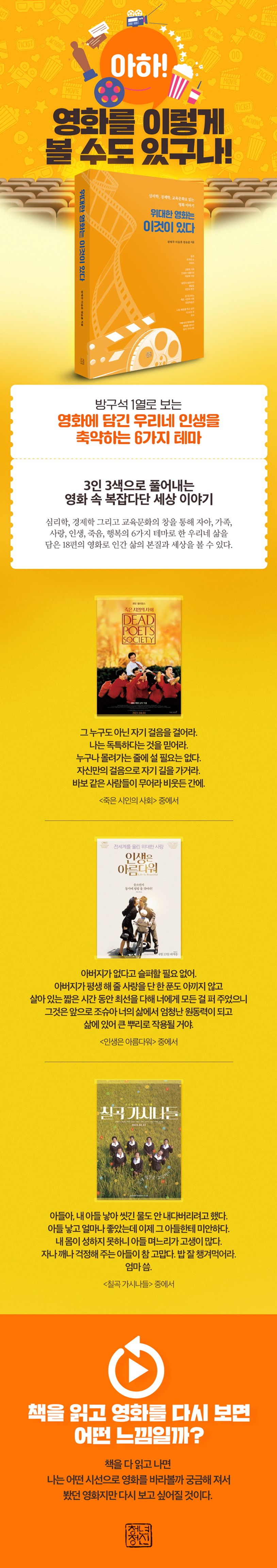 영화평론가들의 분석들은 대개 고답적이어서 지루할 뿐이지만 6개의 테마를 중심으로 18편의 영화를 두고 이야기를 나누는 세 사람이 각자 전문분야인 심리학, 경제학 그리고 교육문화의 시각을 가지고 보는 영화 이야기는 흥미진진하고 색다른 울림을 준다.