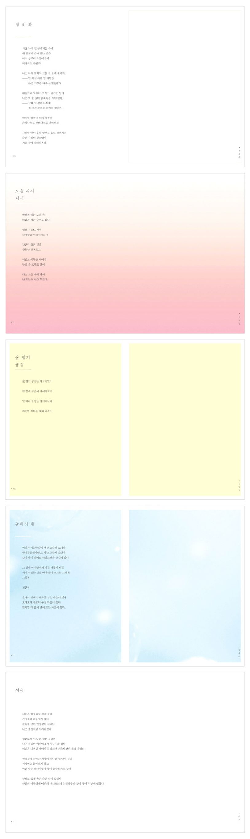 감성적인 디자인과 다채로운 콘텐츠가 눈길을 사로잡는 이 책에 담긴 평생 간직하고 싶은 시 113편은 손으로 필사하며 마음에 새기는 즐거움을, 시의 아름다움을 재발견하는 기쁨을 선사한다. 시대를 막론하고 오랫동안 사랑받는 시에는 변치 않는 아름다움이 있다. 오랜 세월 많은 이들에게 잔잔한 위로를 건네던 시를 담은 이 책을 통해 클래식 작품의 힘을 느끼고 감동과 여운을 느낄 수 있다.