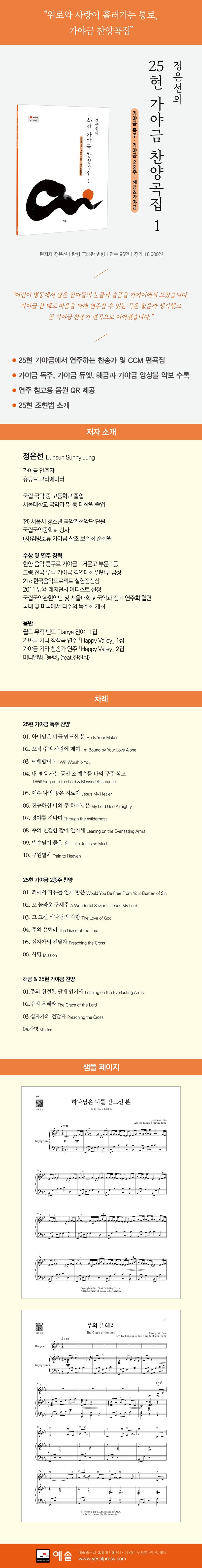 25현 가야금으로 하나님을 찬양하며 사람들에게 위로를 줄 수 있는 가야금 찬양곡집이다.