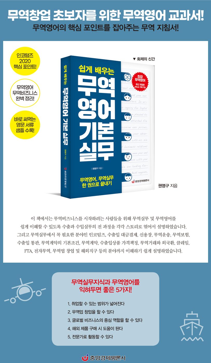 특히 ‘인코텀즈 2020’을 수록했는데 10년 만에 개정한 인코텀즈가 어떻게 바뀌었는지 그 주요 내용과 궁금증 등을 무역 초보자도 알기 쉽게 설명하여 실무적 활용도가 매우 높다.