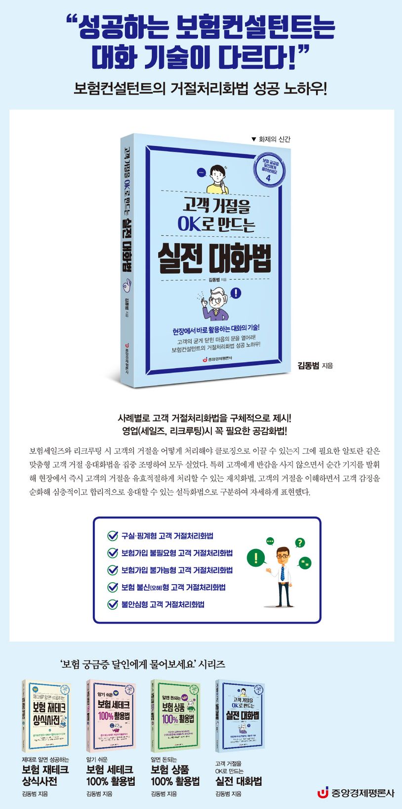 보험세일즈와 리크루팅시 고객의 거절을 어떻게 처리해야 클로징으로 이끌 수 있는지 그에 필요한 알토란 같은 맞춤형 고객 거절 응대화법을 집중 조명하여 모두 실었다.