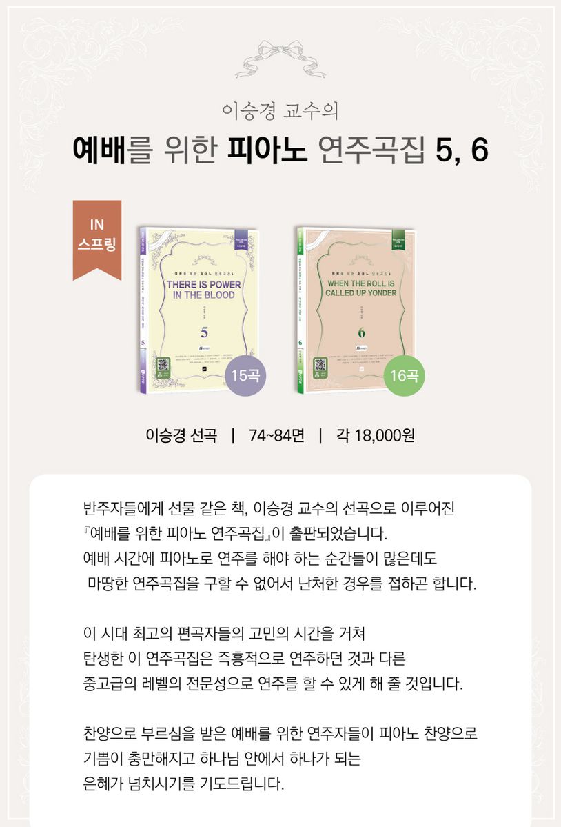 01.죄에서자유를얻게함은ThereIsPowerintheBlood MarianneKim 402.십자가로가까이Jesus,KeepMeNeartheCross DavidSchwoebel 1003.성도여다함께ICome,Christians,JointoSing DarcyStanley 1504.나같은죄인살리신AmazingGrace DanSigmon 1905.오신실하신주IGreatIsThyFaithfulness DanSigmon 2406.선한목자되신우리주Savior,likeaShepherdLeadUs DanSigmon 2907.오신실하신주IIGreatIsThyFaithfulness AnnaLauraPage 3508.때저물어서날이어두니AbideWithMe SandraEithun 4009.만백성기뻐하여라GodRestYeMerry,Gentlemen BradNix 4410.무덤에머물러ChristArose! LloydLarson 5011.주음성외에는INeedTheeEveryHour AnnaLauraPage 5412.예수가우리를부르는소리SoftlyandTenderly PattiDrennan 5813.거룩거룩거룩전능하신주님Holy,Holy,Holy!LordGodAlmighty BeckiSlagleMayo6214.아하나님의은혜로IKnowWhomIHaveBelieved LloydLarson 6515.성도여다함께IICome,Christians,JointoSing SandraEithun 69