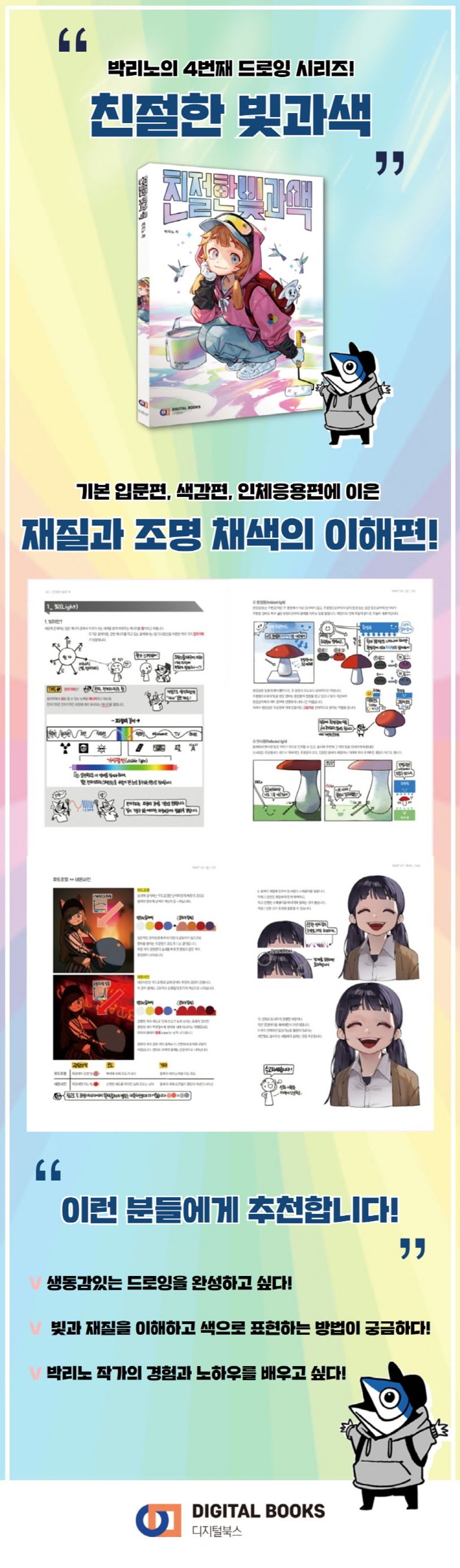 친절한 드로잉』 『친절한 컬러링』 『다이나믹 드로잉』 에 이은 박리노 작가의 4번째 책 ! 『친절한 빛과 색』