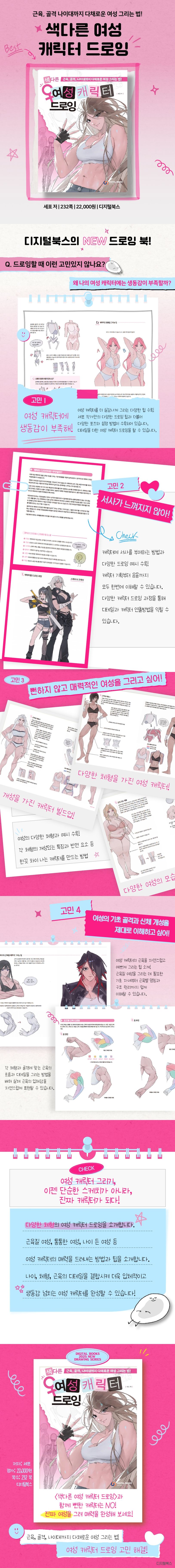진짜 여성의 모습을 제대로 이해해야만, 한 끗 차이를 만드는 나만의 독특한 캐릭터를 그릴 수 있습니다. 색다른 여성 캐릭터 드로잉은 다양한 연령대, 인종, 골격, 근육을 소개하며 서사가 살아 숨 쉬는 매력적인 여성 캐릭터를 완성할 수 있도록 도와줍니다.