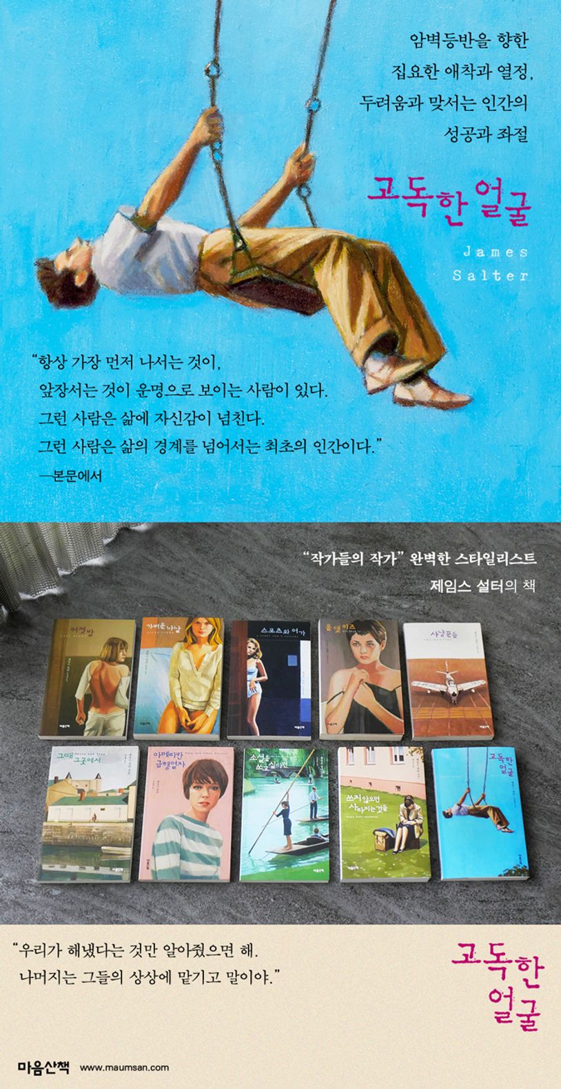 마지막 소설을 발표하기 34년 전 출간한 『고독한 얼굴』은 제임스 설터의 다섯 번째 장편소설이자 마음산책에서 출간하는 그의 열 번째 책으로, 프랑스 샤모니에서 알프스 고봉들을 오르려는 열망에 사로잡힌 주인공 랜드의 이야기를 그리고 있다. 설터는 1976년 ‘고독한 히피’로 이름을 떨쳤던 등반가 게리 헤밍의 삶과 공적을 투영해 산악 등반에 관한 각본을 쓰지만, 감독 로버트 레드포드에게 ‘주인공이 너무 과묵하다’는 이유로 거절당한다. 그대로 사장될 뻔한 스토리는 출판사 ‘리틀, 브라운’의 편집장이던 로버트 지나의 설득 끝에 1979년 소설로 빛을 볼 수 있었다. 암벽등반에 자신을 투신하는 한 남자의 여정은 수준 높은 등반 묘사로 일반 독자는 물론 산악인들에게서도 “아웃도어 라이프에 관한 최고의 소설”이라는 극찬을 받았다.