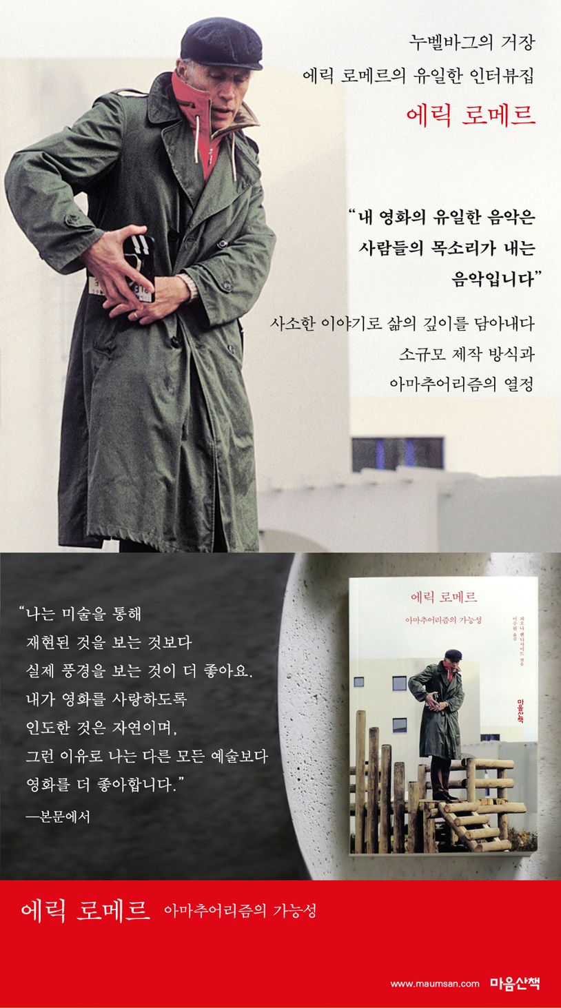 에릭 로메르의 영화는 여러 기획전을 통해 꾸준히 시네필들 사이에 회자되면서 새로운 시대의 관객들과 만나고 있다. 이 책은 여전히 현재적인 작가인 에릭 로메르와 직접 마주해 이야기를 나눌 수 있는 기회를 제공한다.