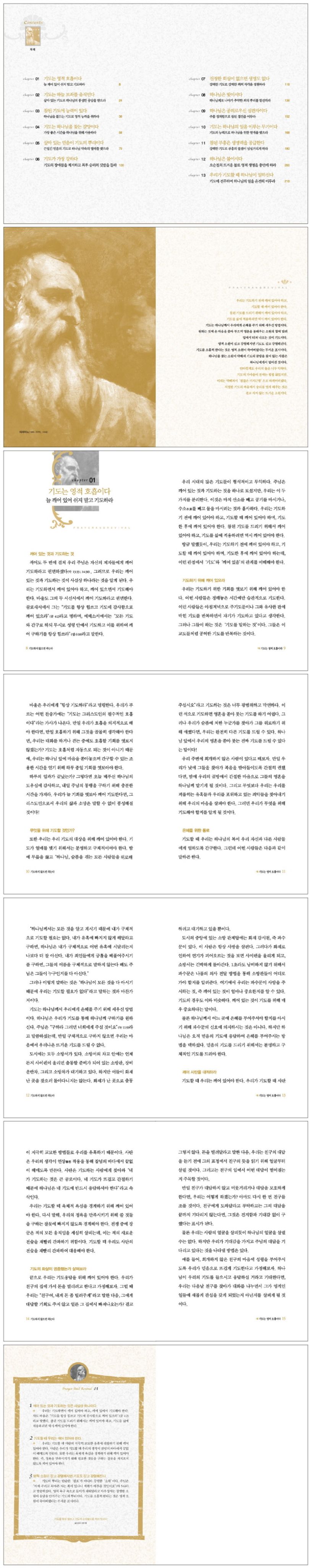 이 책은 기도는 우리의 생명줄임을 선포하고 있다. 하늘에 계신 하나님의 귀에 들려 그분의 마음을 만지고, 손을 움직이는 유일한 방법인 기도를 붙들지 않으면, 영적 산소 공급이 끊어져 죽은 것이나 다름 없음을 일깨운다. 특히 기도의 첫째 조건은 하나님의 뜻을 갈망하는 열정으로 타오르는 것임을 강조하고 있다. 아울러 기도로 씨를 뿌리고 열매를 거두도록 도전한다. 양장.