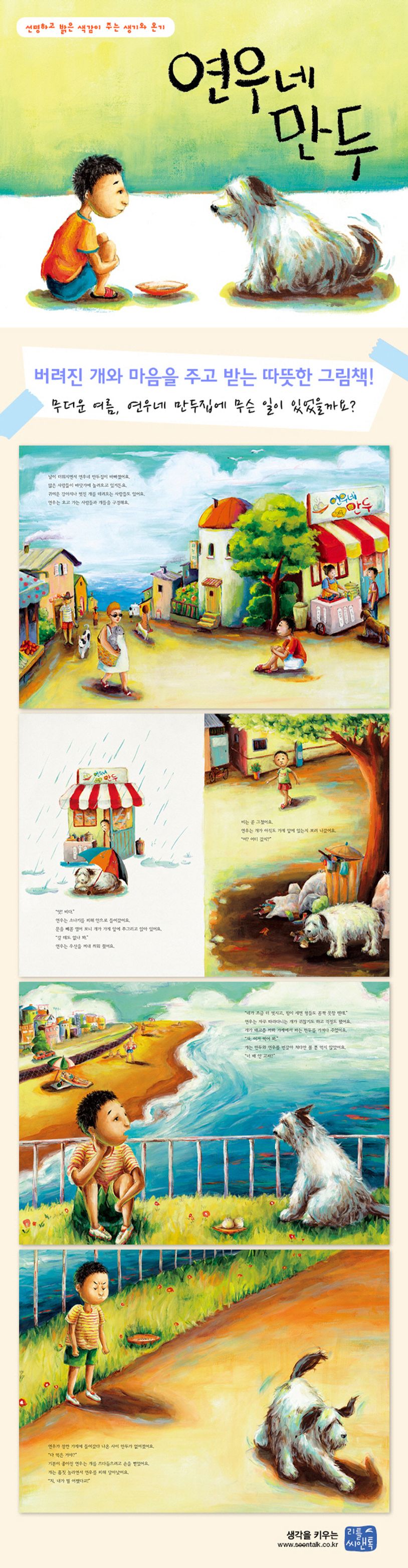 「리틀씨앤톡 그림책」제6권『연우네 만두』. 이 책은 연우와 떠돌이 강아지 '만두'와의 이야기를 그린 책이다. '만두'와의 만남부터 '만두'와 친구가 되기까지의 과정을 생생하게 그려내 독자들에게 읽는 내내 따뜻함을 느낄 수 있도록 안내한다.