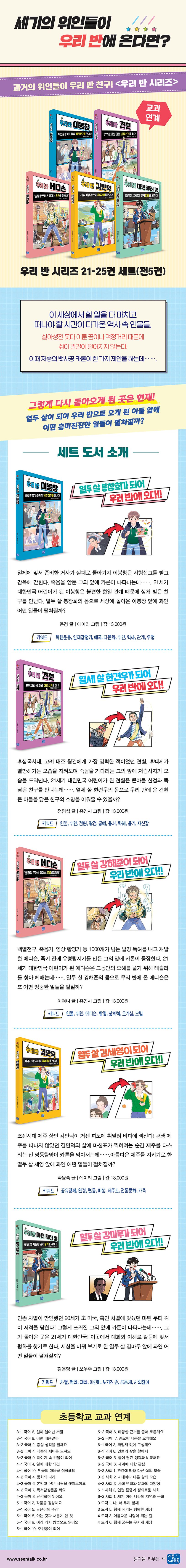 우리 반 시리즈 21-25권 세트를 통해 세기의 위인들과 친구가 되어 보자!
