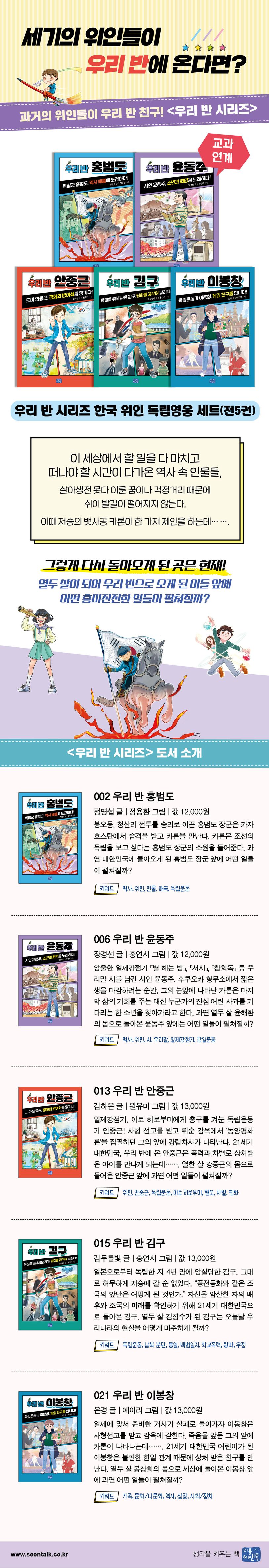 우리 반 시리즈 한국 위인(독립영웅) 세트 (홍범도, 윤동주, 안중근, 김구, 이봉창 | 전 5권)