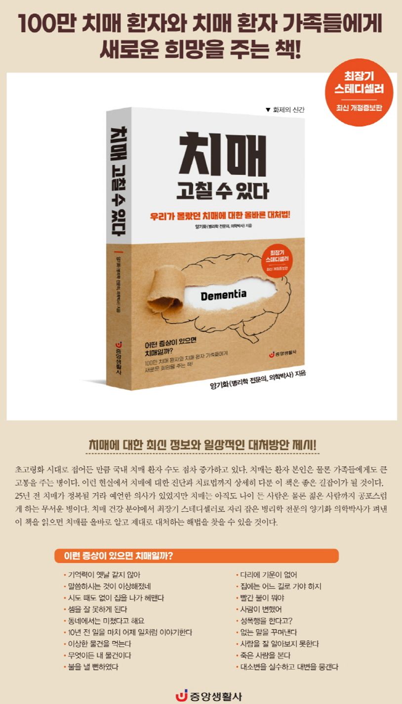 초고령화 시대로 접어든 만큼 국내 치매 환자 수도 점차 증가하고 있다. 치매는 환자 본인은 물론 가족들에게도 큰 고통을 주는 병이다. 이런 현실에서 치매에 대한 진단과 치료법까지 상세히 다룬 이 책은 좋은 길잡이가 될 것이다.