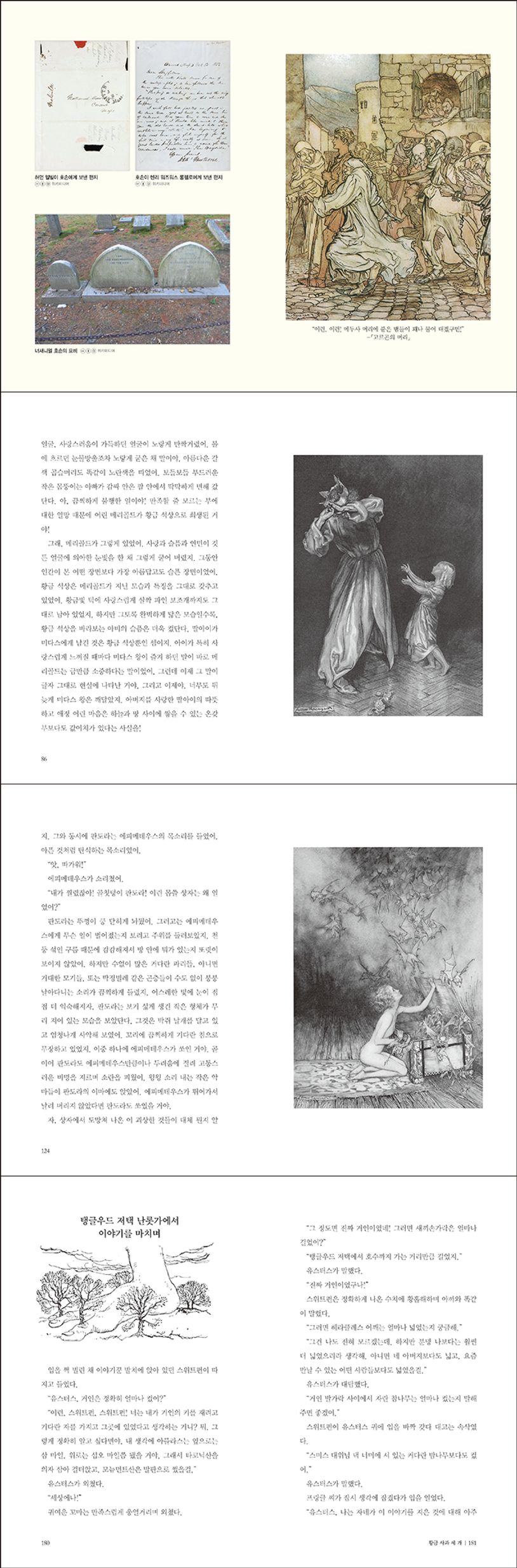 호손은 낡고 무거운 〈그리스 로마 신화〉의 외피를 시원스레 벗기고, 웃다가 울리고, 두려움에 벌벌 떨다가 손에 땀을 쥐게 만드는 흥미진진한 이야기(「고르곤의 머리」, 「황금을 만드는 손길」, 「아이들의 천국」, 「황금 사과 세 개」, 「신기한 주전자」, 「키마이라」) 6편을 골라 탱글우드라는 시골 저택에서 재미난 이야기꾼 유스터스 브라이트가 아이들에게 생생하게 이야기를 들려주듯 〈그리스 로마 신화〉 이야기를 전한다. 원작의 뼈대는 충실히 살리면서 작가 특유의 상상을 곁들여, 새롭고 재미난 『그리스 로마 신화』로 재창조한 이 작품은 어린 독자들과 〈그리스 로마 신화〉를 어렵게만 느끼는 일반 독자들을 그 옛날, 신과 영웅과 괴물이 공존하던 세상으로 초대한다.