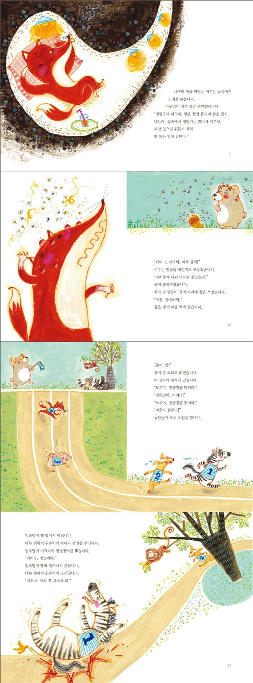 숲속의 꾀 많은 여우는 동물들을 골탕 먹이는 데 선수이다. 너구리와 내기를 해 굴을 빼앗기도 하고, 곰을 속여 벌꿀을 혼자 다 차지하려고 한다. 자꾸만 소동이 일어나자 사자 대왕은 친구를 괴롭히지 말고 다들 사이좋게 지내라며 ‘숲속 나라 달리기 대회’를 연다. 여우는 재빠른 동물들 사이에서 “1등은 나라고!” 외치며 참가하는데, 우승 상품인 꿀 독을 차지하기 위해 또다시 못된 꾀를 부린다.