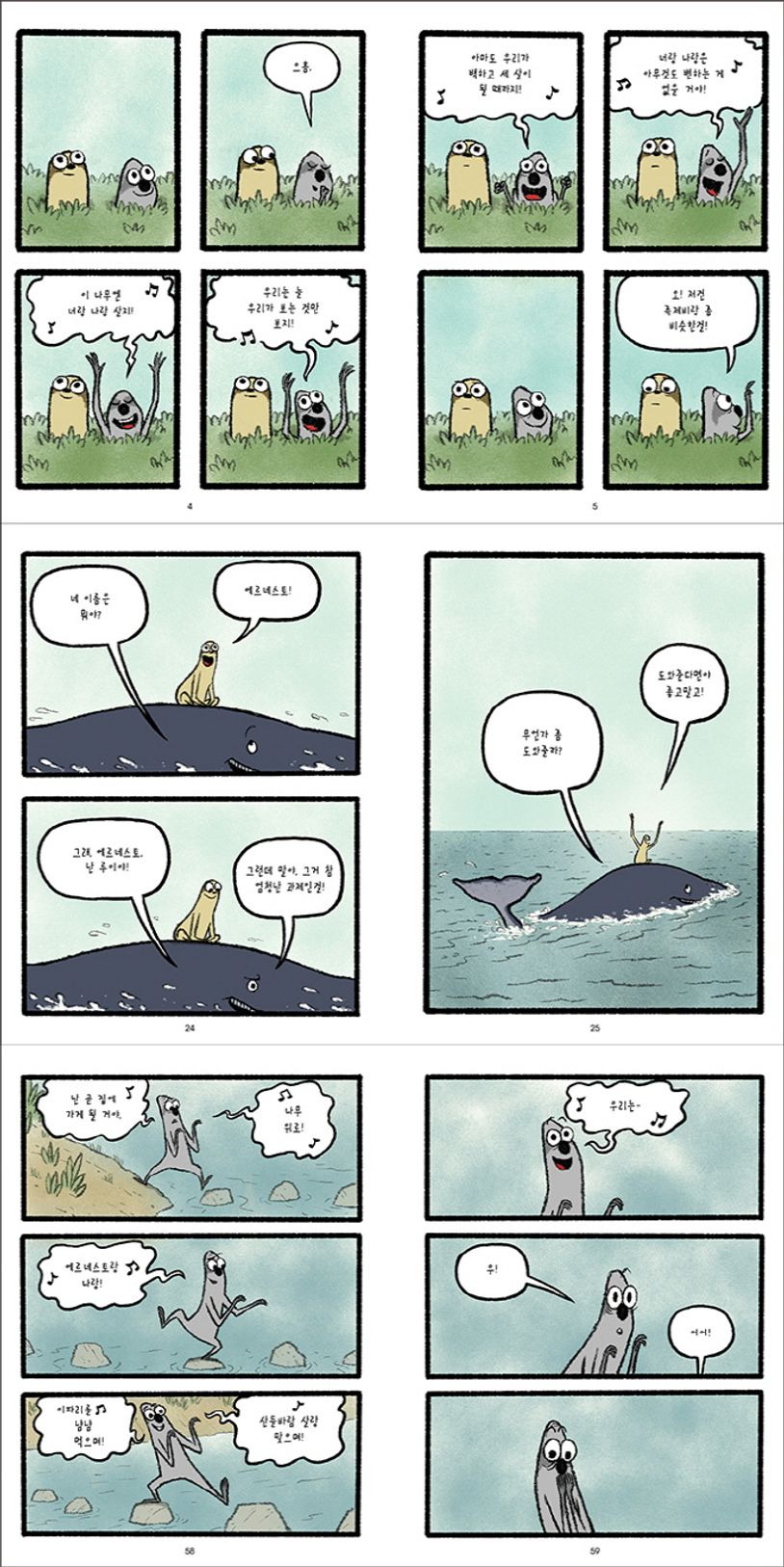 피터는 둘이 함께 살고 있는 멋진 나무를 사랑해요. 그래서 절대로 그곳을 떠나고 싶지 않아요. 하지만 에르네스토는 푸른 하늘을 사랑해서 지구상의 모든 곳에서 하늘 전체를 보고 싶어 하지요. 그래서 멀고 먼 모험을 떠나고, 혼자 남은 피터는 애를 태웁니다. 두 단짝은 서로 멀리 떨어져 있게 되면서 영영 멀어지게 될까요, 아니면 더 가까워지게 될까요?
