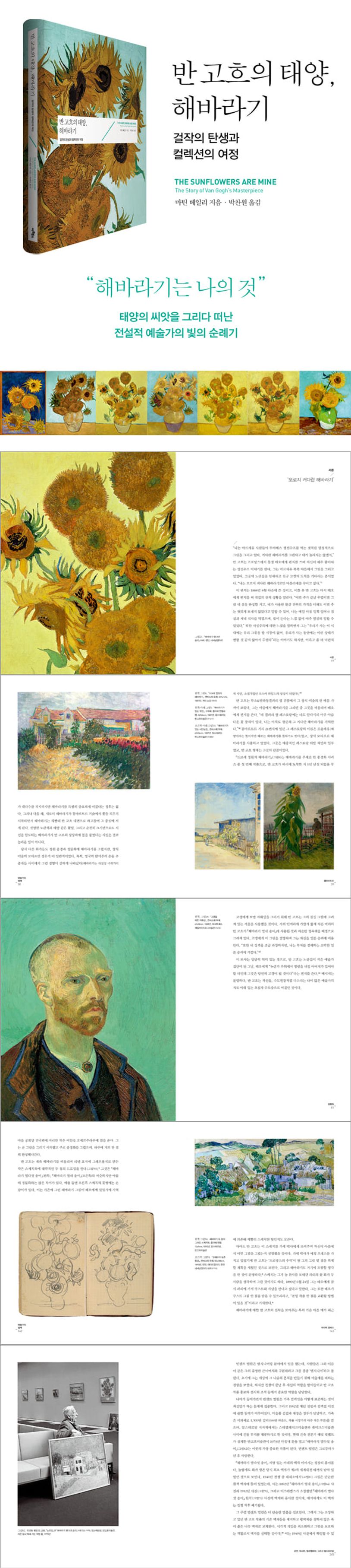 빈센트 반 고흐에 관한 책은 많다. 국내에 소개된 반 고흐 관련 서적만 검색해보아도 수십 종에 이르고 전문가 혹은 애호가가 아니라면 어떤 책이 필요하고 어떤 책을 읽어야 할지 선택이 어려울 정도다. 그럼에도 다시 한번 반 고흐의 책이 세상에 나왔다. 『반 고흐의 태양, 해바라기』. 이 책을 한마디로 정의하자면 ‘놀라움’ 그 자체다. 그 누구도 이 책의 지은이처럼 반 고흐를 연구하고 특정 작품을 깊이 있게 파고든 적이 없었기 때문이다. 특히 반 고흐 사후, 제1,2차세계대전 등 험난한 역사 속에서 작품들이 어떻게 살아남고 팔려나가 현재 우리들 곁으로 오게 되었는지에 대해서는 자세히 알려진 바가 없었다. 그 험난한 여정과 궤적을 반 고흐 전문가 마틴 베일리가 수년에 걸쳐 연구하고 새로 찾은 자료를 바탕으로 한 권의 책으로 묶었다. 1980년대부터 반 고흐 연구를 시작해 집중적으로 글을 써온 지은이는 이 책을 통해 우리들에게 다시금 반 고흐라는 예술가의 진면목을 조망하고, 특정 작품이 겪는 실로 놀라운 모험을 추적하면서 반 고흐에 대해 우리가 더 알아야 할 것들이 여전히 남아 있음을 시사한다.