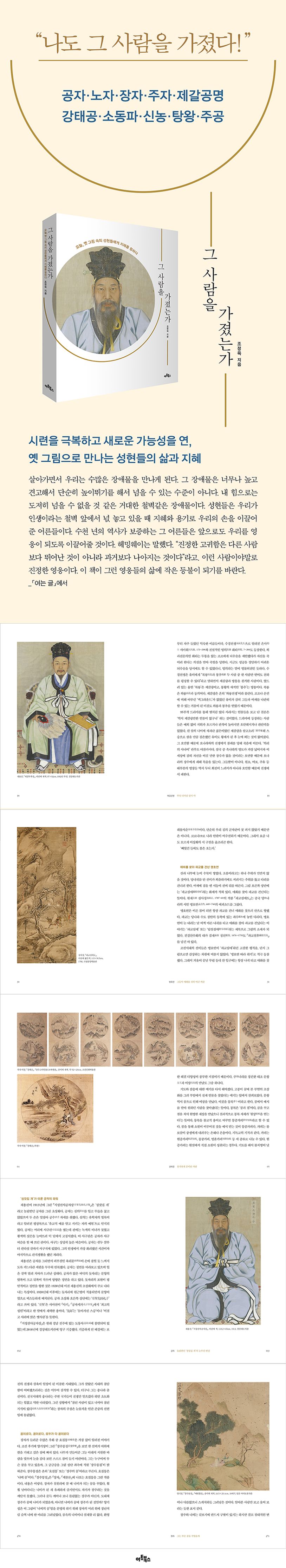 저자는또육십에,공자공부로박사학위를받았다.오랫동안중국고전을두루섭렵했다.지행합일(知行合一).고전공부는곧삶으로이어졌다.고전을단순한지식으로서가아닌,지혜의원천으로활용하며실제삶을일궈왔다.그래서저자의체험과생각이녹아든글에는뭉근한에너지가함께한다.저자에게중국의성현들은과거의인물이아니다.지금도살아있는,그래서늘삶의갈증을달래주고채워주는‘샘이깊은물’과같은존재다.저자는옛그림과‘그사람’들의삶의방식과생각을통해자신의통찰과생활을담담히보여준다.