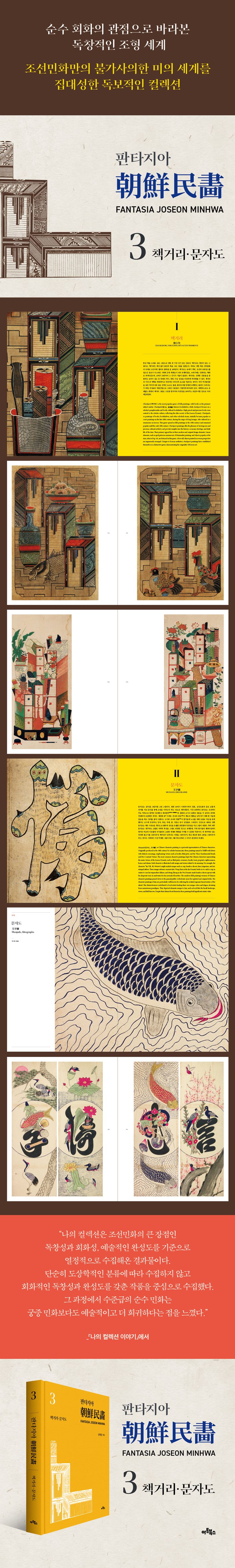 하지만 학계의 이 같은 논거에도 불구하고 이 책을 쓴 민화 컬렉터 김세종은 종전의 관념을 깨고 오랜 세월 우리 민화를 회화적 관점으로 탐구하고 수집해오면서 발견한 조선민화만의 독특한 예술성을 널리 알리고자 힘써왔다. 『판타지아 조선민화』는 민화의 독창성과 회화적 아름다움에 매료된 저자가 오랜 시간 열정적으로 수집해온 결과물을 집대성한 화집으로, ‘하늘에서 뚝 떨어진 불가사의한 미의 세계’ 조선민화를 새롭게 조명하고 있다.