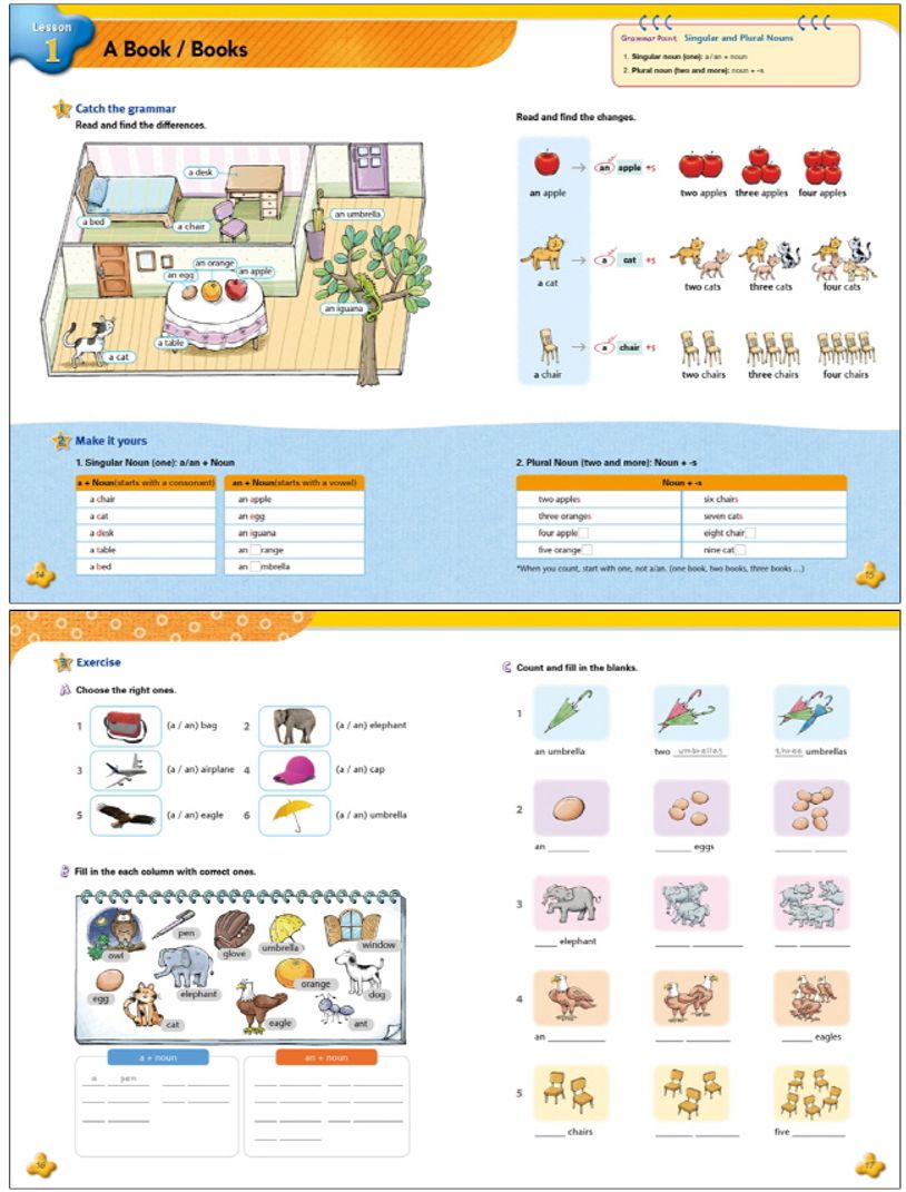 초등 영어 문법 교재 『FIRST STEP IN GRAMMAR. 1A』. 효과적인 방식으로 문법 학습을 완성하는 초등학생용 영문법 교재로 문법 공부를 막 시작하는 초등학생들에게 필수적인 문법 사항들을 모두 수록하고 있다. 전문 영어로 구성되어 있으며, 각 문법 사항의 학습이 부담감 없이 이어질 수 있도록 친절하게 안내하였다. 더불어 시각 이미지를 활용하였으며, 배운 문법 사항을 확인하는 테스트를 수록했다.