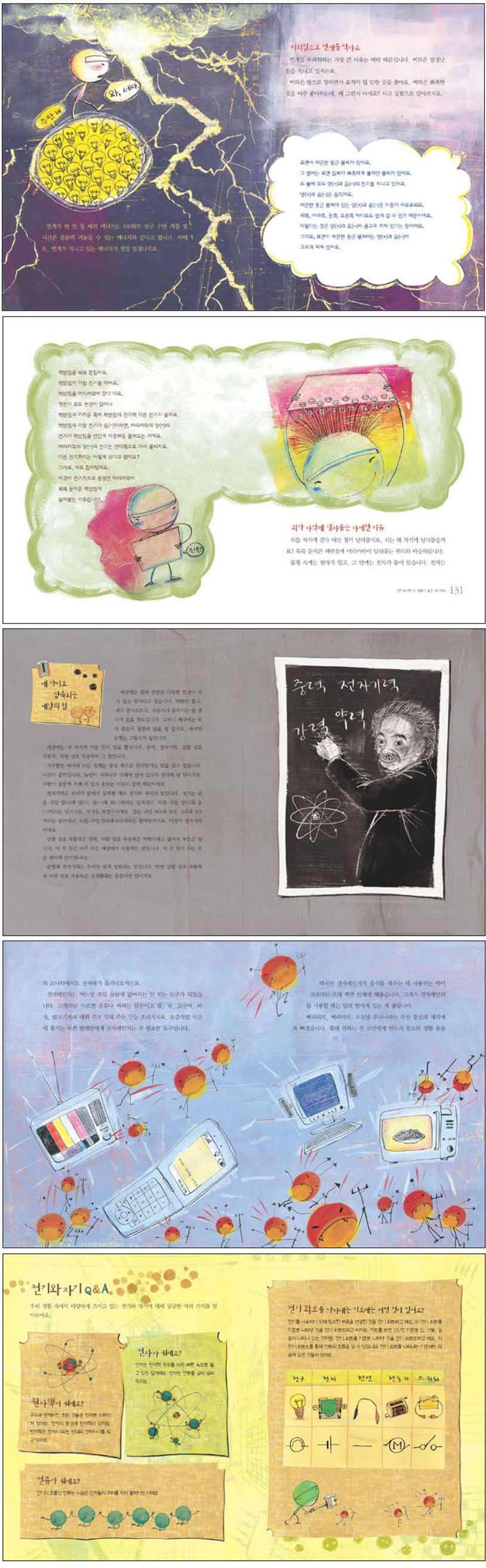 목차들어가는이야기비비기만해도전기가생겨요-4학년1학기_3.전구에불켜기:전기를사용하는기구알기*데모크리토스가처음으로원자라고부르다옷에서빠지직,하늘에서번쩍-4학년1학기_3.전구에불켜기:전기가통하는물질찾기*번개가칠때주의해야할사항전기가흐르고,안흐르고-4학년1학기_3.전구에불켜기:전기가통하는물질찾기-반입자세상전기를가두어요-4학년1학기_3.전구에불켜기:전기를사용하는기구알기-5학년2학기_8.에너지:전기에너지와에너지의전환*전선에앉은새가무사한이유나침반은길을찾아주어요-3학년1학기_2.자석놀이:자석이가리키는방향에대해알기*바다속지구자기도뒤바뀌다전기와자기는쌍둥이같은사이예요-3학년1학기_2.자석놀이:자석의극에대해알기-6학년1학기_7.전자석:전류가흐르는에나멜선주위나침반의움직임*네가지로압축되는세상의힘전류를유도해요-5학년2학기_6.전기회로꾸미기:전기회로에서전류가흐르는길조사-6학년1학기_7.전자석:전류가흐르는에나멜선주위나침반의움직임*직류와교류,직렬과병렬전자기파를널리이용해요-4학년1학기_3.전구에불켜기:전기를사용하는기구알기-6학년1학기_7.전자석:전자석의특징알기*김구를살린전화마치는이야기부록:한눈에펼쳐보는전기와자기찾아보기