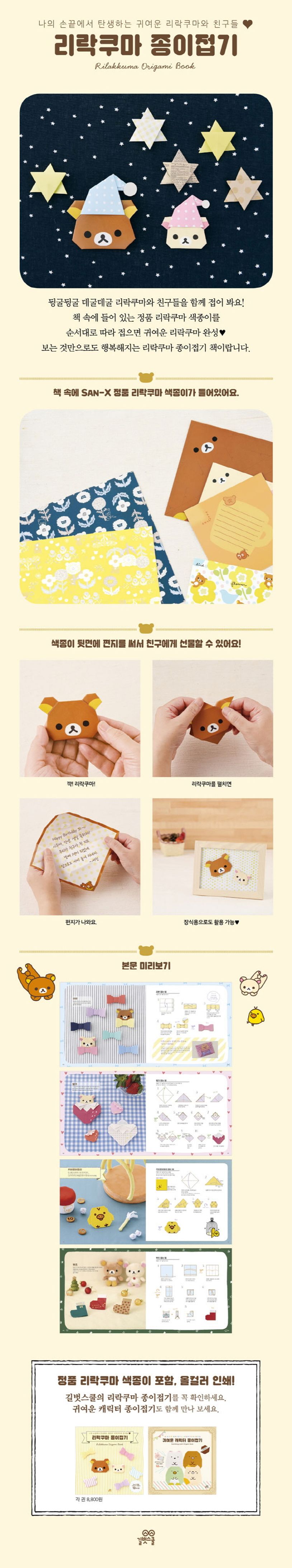 귀여운리락쿠마로당신의마음을전달해요!4책마지막에색종이가들어있어요6책에나오는기호와종이접기방법7리락쿠마친구들111장리락쿠마편지접기리락쿠마8코리락쿠마9수면모자와별12키이로이토리14버섯모자를쓴키이로이토리16쿠키18하트20찻주전자&컵22셔츠242장편지?봉투케이스접기기본편지?삼각편지?기본봉투26바람개비봉투30세뱃돈봉투32카드케이스343장귀여운장식접기두가지색하트36마카롱37버섯40도토리41부츠44딸기46사탕48클로버50리본52사과54부록색종이57