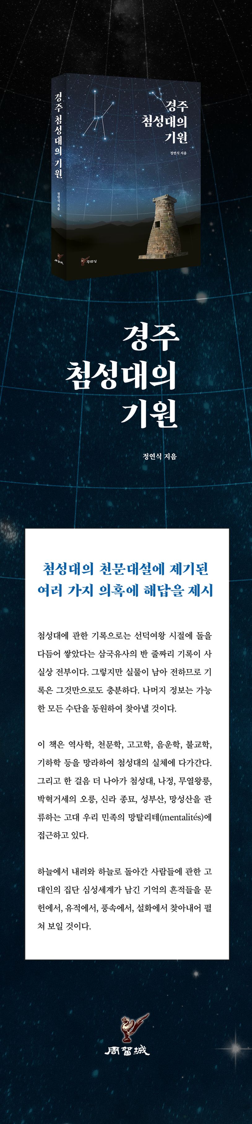 이 책은 역사학, 천문학, 고고학, 음운학, 불교학, 기하학 등을 망라하여 첨성대의 실체에 다가간다. 그리고 한 걸음 더 나아가 첨성대, 나정, 무열왕릉, 박혁거세의 오릉, 신라 종묘, 성부산, 망성산을 관류하는 고대 우리 민족의 망탈리테(mentalités)에 접근하고 있다. 하늘에서 내려와 하늘로 돌아간 사람들에 관한 고대인의 집단 심성세계가 남긴 기억의 흔적들을 문헌에서, 유적에서, 풍속에서, 설화에서 찾아내어 펼쳐 보일 것이다.