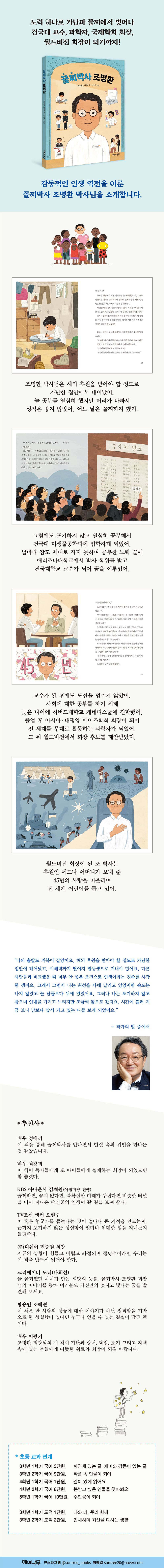 박사라고 하면 떠오르는 것 중 하나는 바로 ‘엄친아’일 거예요. 공부도 잘하고 뭐든지 완벽한 그런 사람 말이지요. 하지만 조명환 박사는 그렇지 않았어요. 건국대 교수에, 하버드대학교 출신에 아시아·태평양 에이즈학회 회장, 월드비전 회장 등 놀라운 이력을 갖춘 조명환 박사님의 실상은 우리가 상상하는 것과 많이 달라요. 해외 후원을 받아야 할 정도로 가난한 집안에서 태어났을 뿐만 아니라, 머리가 좋지 않아서 아무리 공부를 해도 성적이 좋지 않았지요. 반에서 꼴찌까지 할 정도였으니까요. 그런 조명환 박사님은 어떻게 꿈을 이루고 성공을 하게 되었을까요?