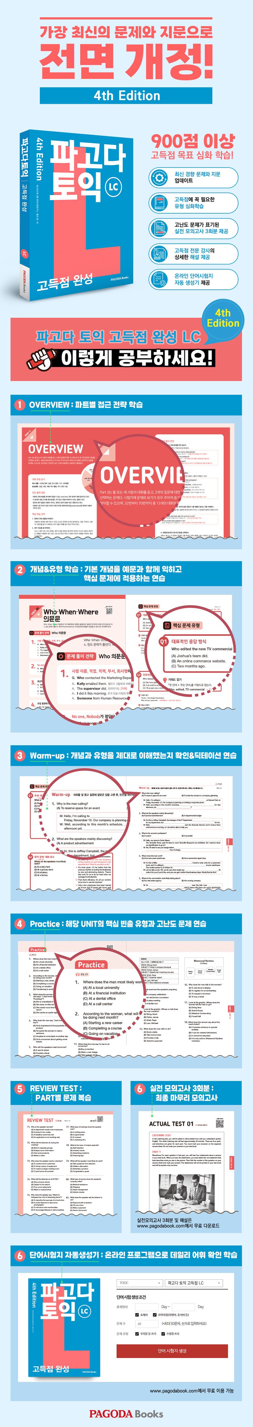최신 경향의 문제와 전략으로 업데이트한 전면 개정판이다. 고득점 전문 강사가 집필한 교재로 중상위권 학습자들이 900점 이상으로 도약할 수 있는 학습전략을 담았다. 중상위권 학습자들의 패턴에 맞춰 개념 학습과 문제풀이 비율을 조정했고, 실전에 집중 대비할 수 있도록 다양한 문제를 제공한다.