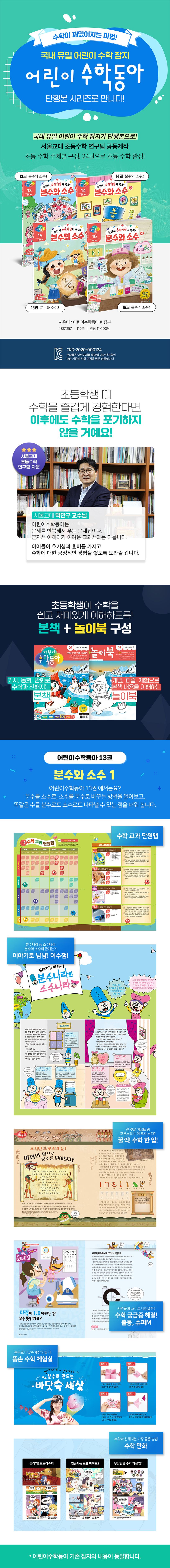 초등 교과에서 다루는 수학 개념을 친근한 일러스트와 술술 읽히는 스토리텔링으로 만난다. 생활 속 수학 이야기, 흥미진진한 퍼즐·게임, 깔깔 웃는 수학 만화, 만들면서 체험하는 수학 놀이 등 쉽고 재밌는 수학을 풍성하게 소개한다. 본책과 분리되는 놀이북은 직접 오려서 수학 놀이를 할 수 있는 도안이 수록돼 있다.